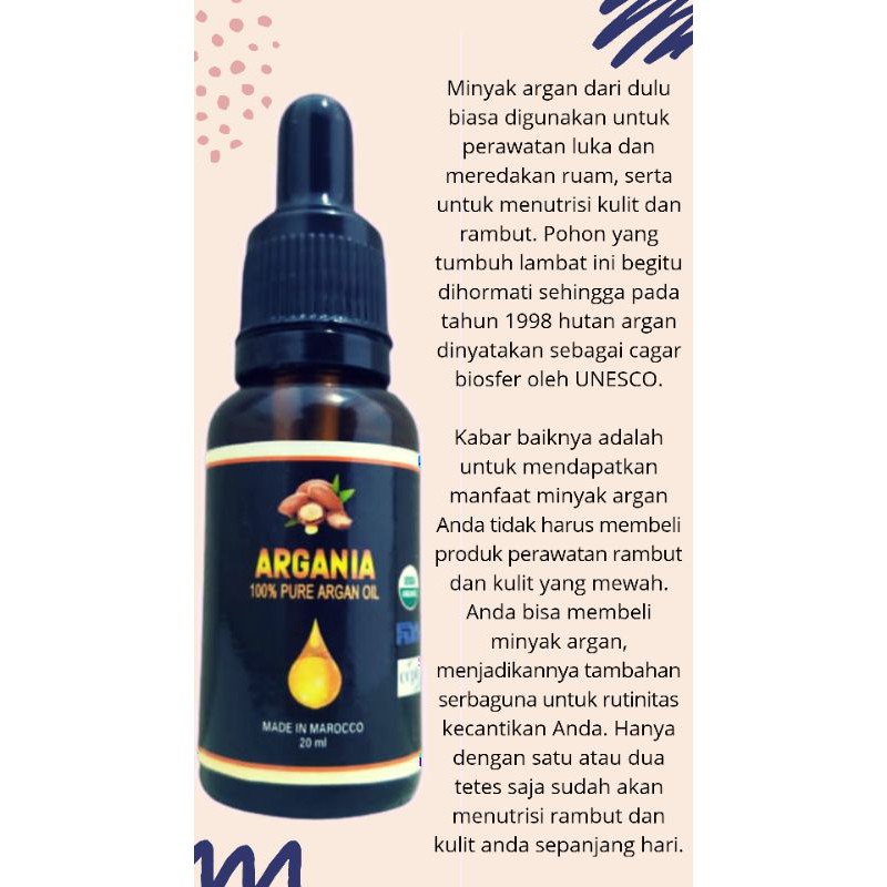 Jual Argania Argan Oil 20 Ml 100 Murni Minyak Argan Maroko Shopee Indonesia
