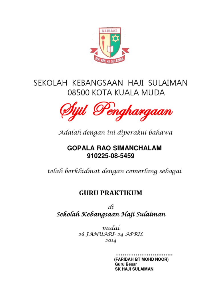 Sijil Penghargaan Mssd Guru Praktikum Pdf