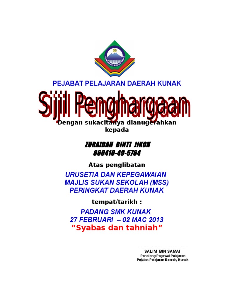 Contoh Sijil Penghargaan Dan Boleh Diedit